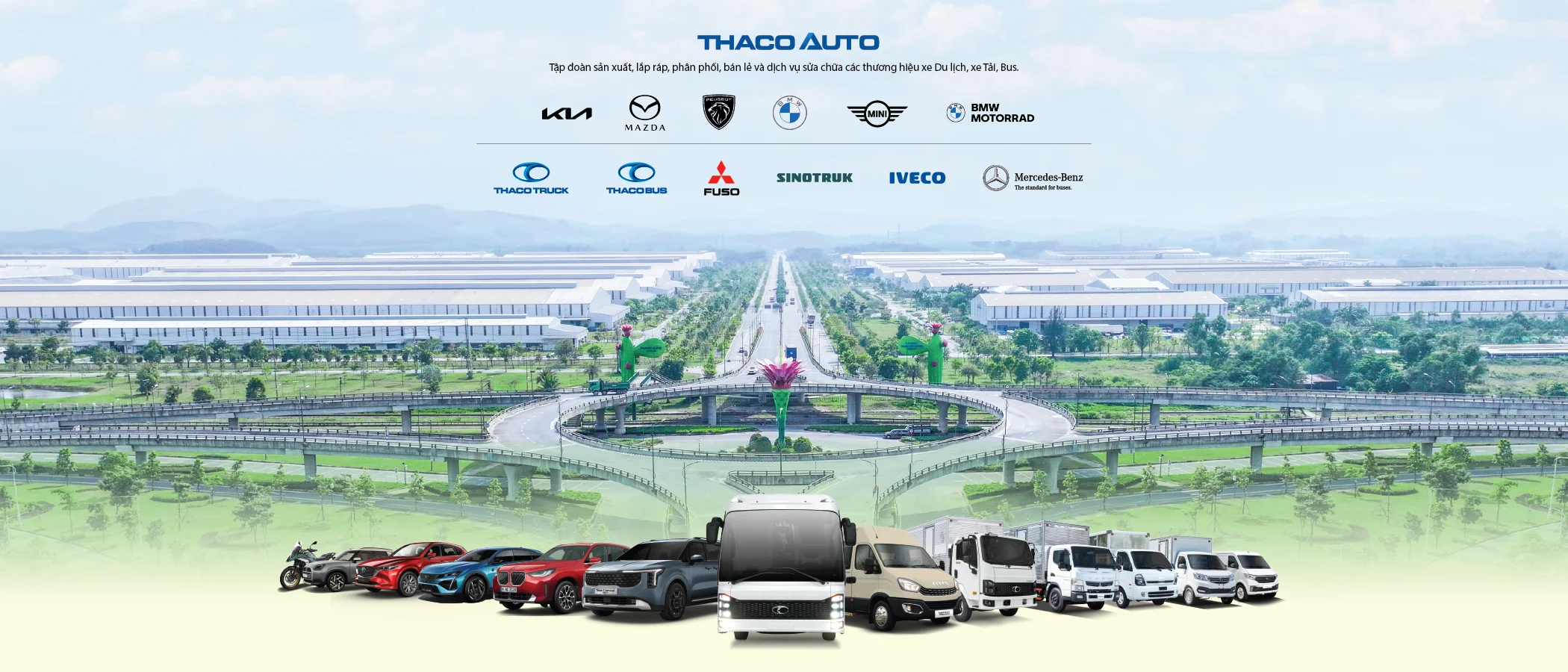THACO AUTO Thanh Hoá kinh doanh đầy đủ chủng loại xe du lịch, xe bus, xe tải, xe chuyên dụng đến từ các thương hiệu ô tô quốc tế (Kia, Mazda, Peugeot, BMW, MINI, Foton) và thương hiệu THACO (THACO BUS), đáp ứng nhu cầu sở hữu xe chuyên biệt đến từng khách hàng.